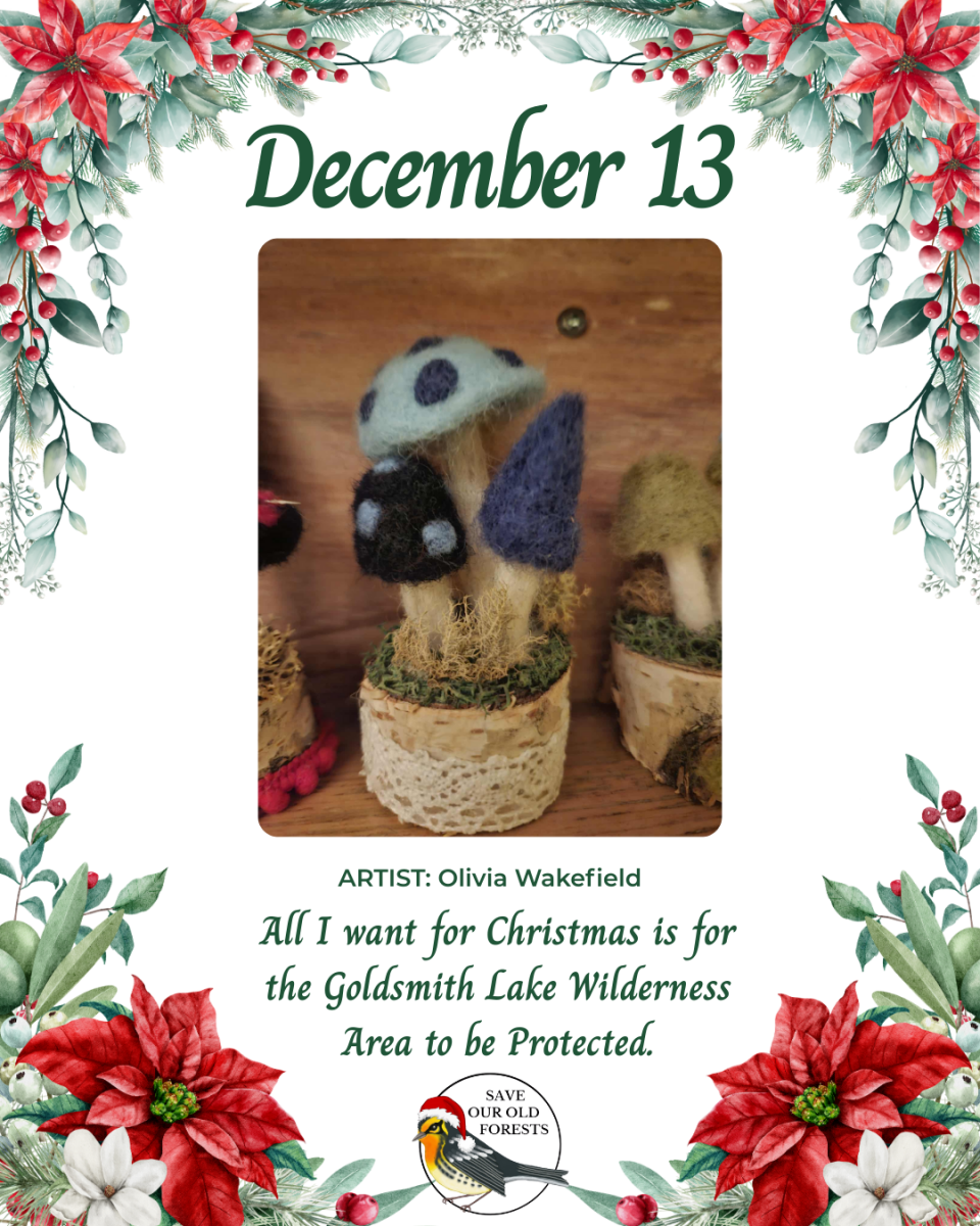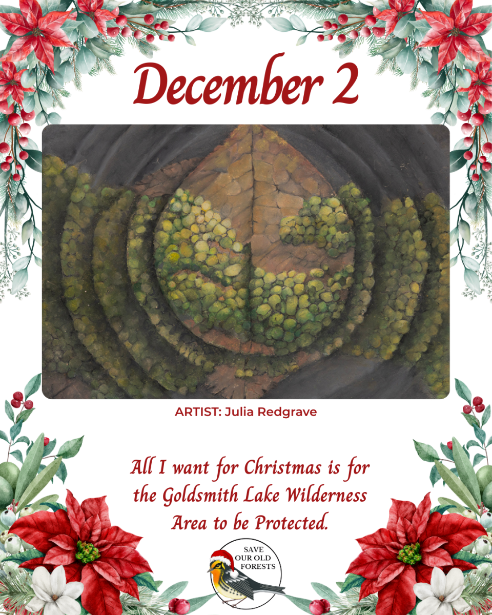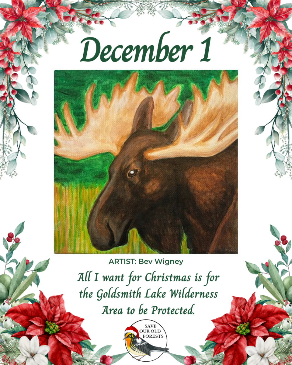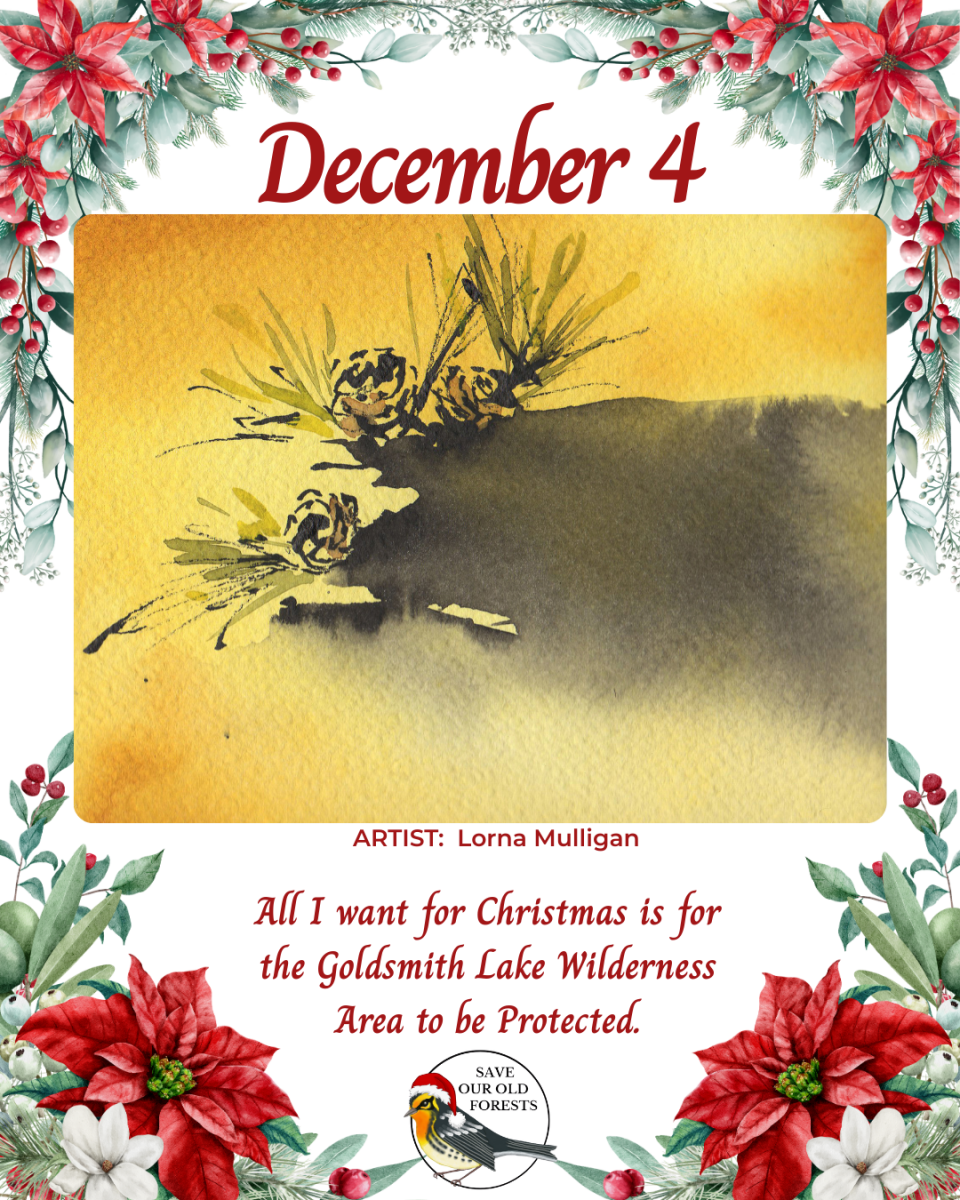 24 Artists from across Nova Scotia / Mi’kma’ki contributed a piece to create this year’s Advent Calendar with the theme “All I want for Christmas is for the Goldsmith Lake Wilderness Area to be protected”. Tune in every day to follow along!