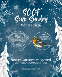 Join SOOF on Sunday, January 18, for a free lunch of soup, bread, sweets and tea and coffee! Doors open and lunch is served starting at 12 pm.  A special guest speaker will give a presentation starting around 1 pm, with plenty of time for questions afterward.