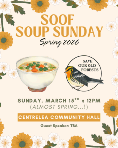 Join SOOF on Sunday, March 15, for a free lunch of soup, bread, sweets and tea and coffee! Doors open and lunch is served starting at 12 pm. A special guest speaker will give a presentation starting around 1 pm, with plenty of time for questions afterward.