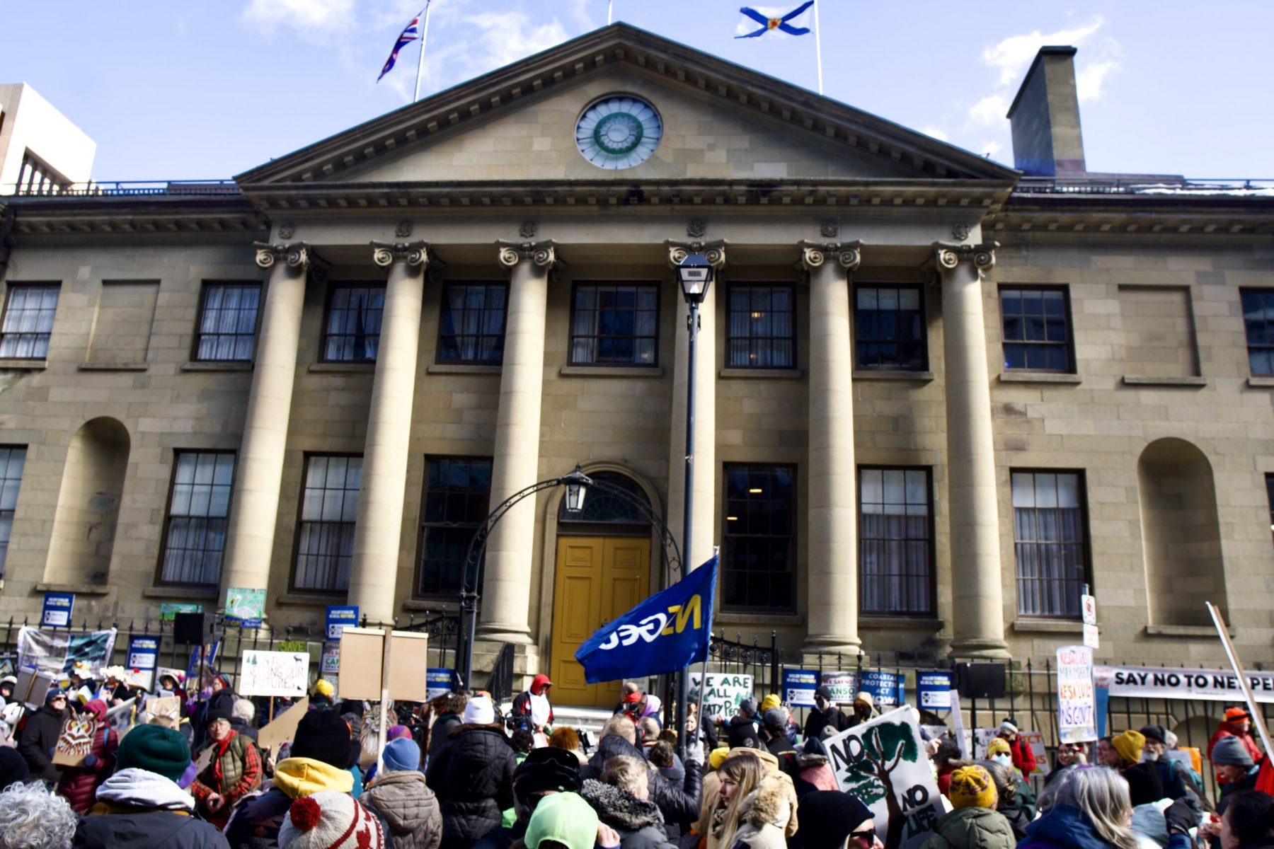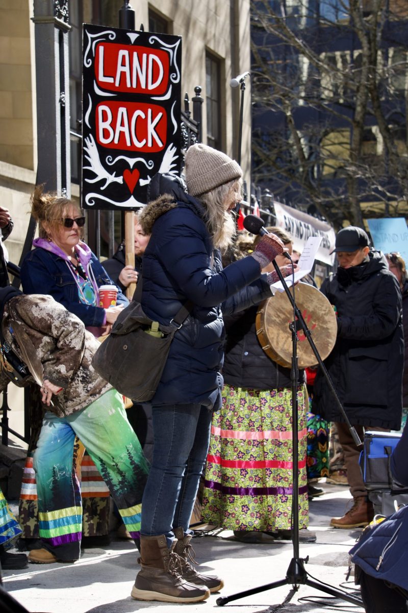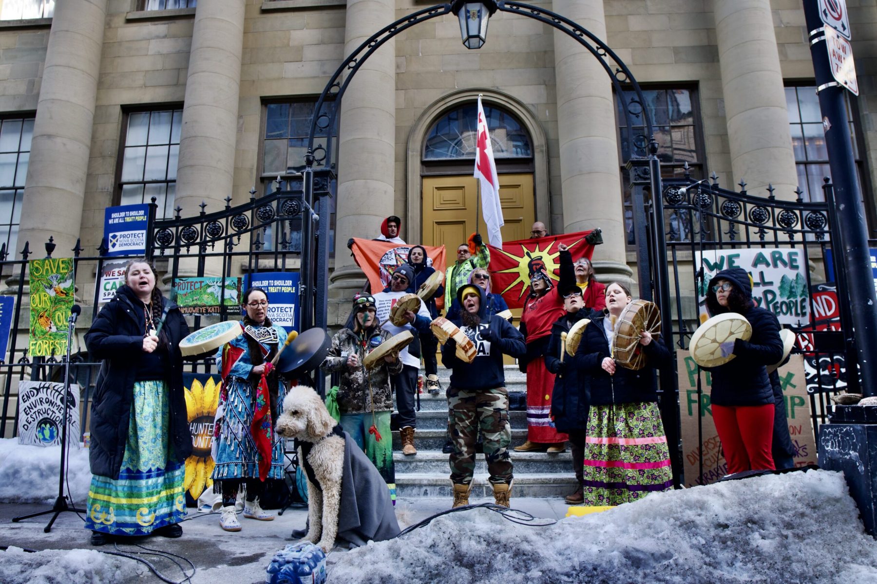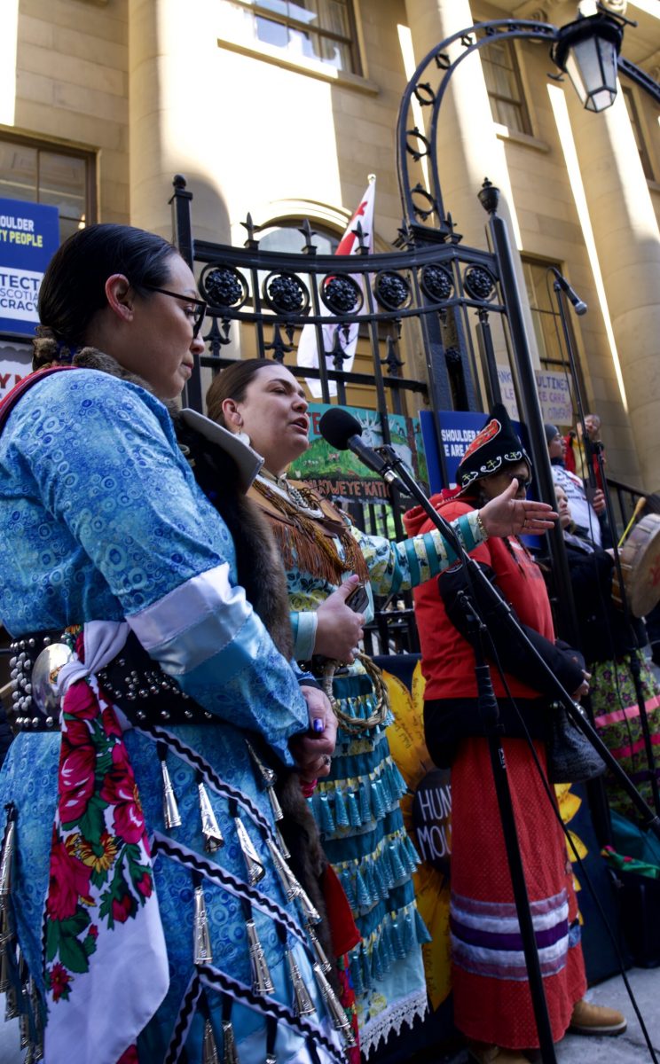 It began with a trickle of people with their signs, hearts on their sleeves, and frustration in their lungs. Then, the Mi’kmaq land defenders, water walkers, and knowledge holders took their rightful places on the steps of Province House – after all, they governed this place first. Albeit, very differently from what we are seeing from the Houston PC Government.