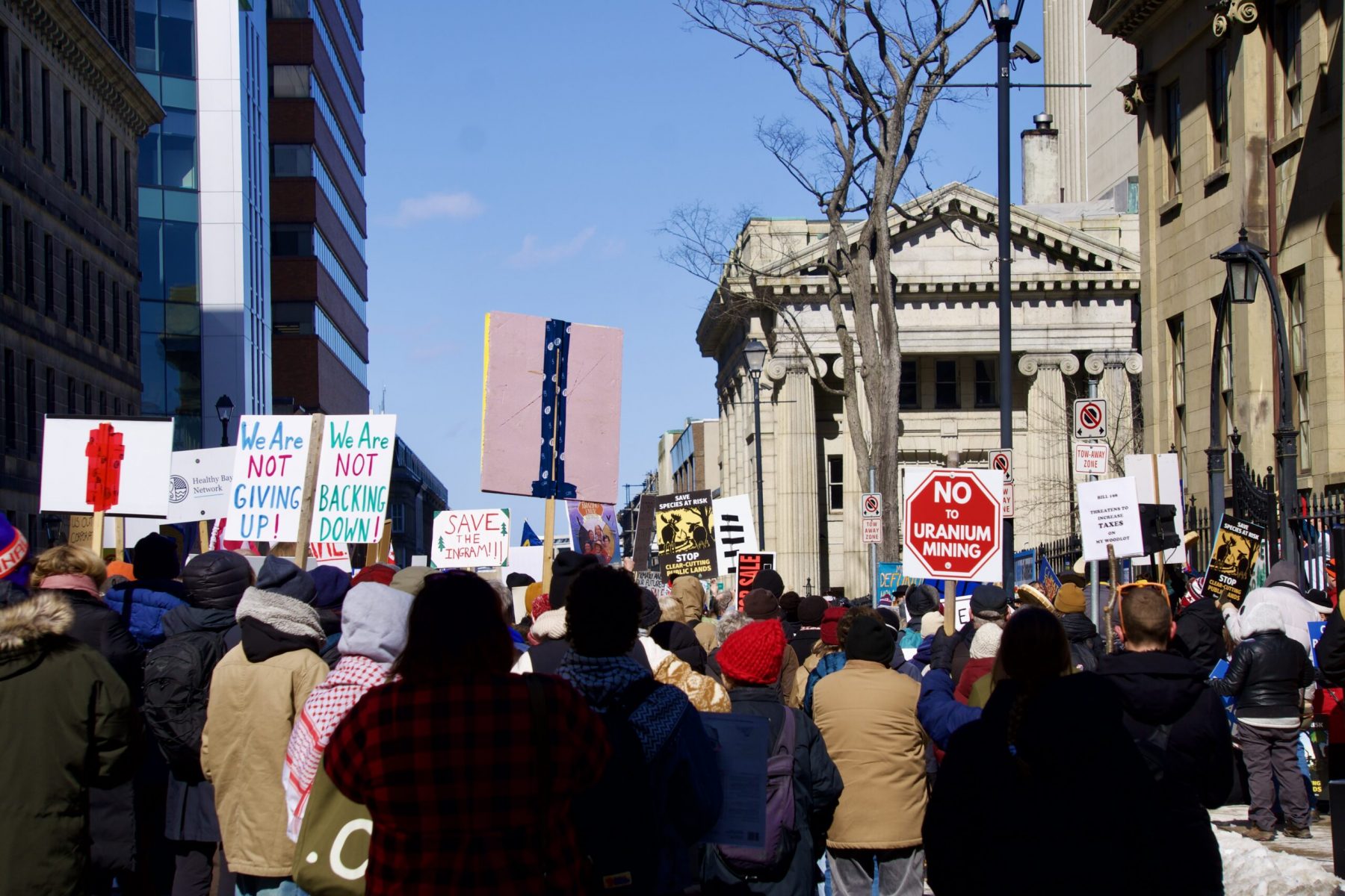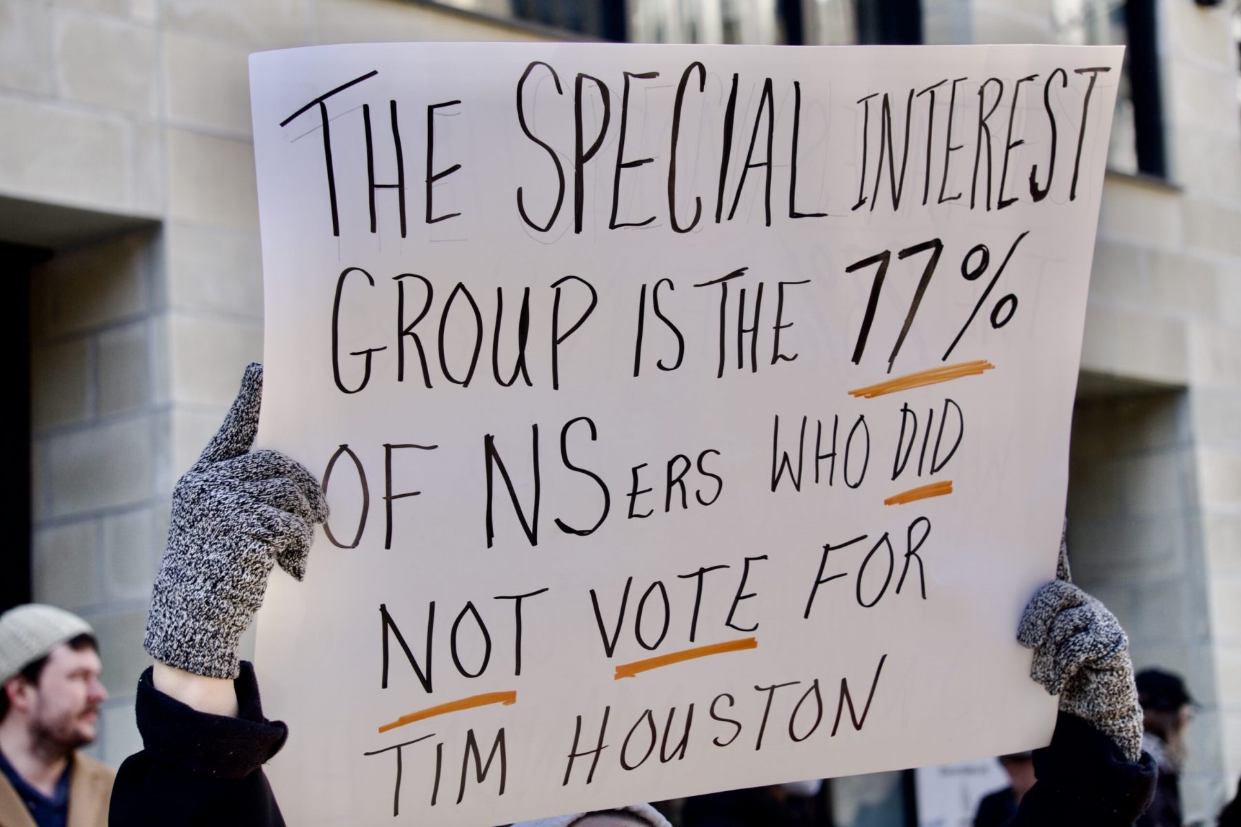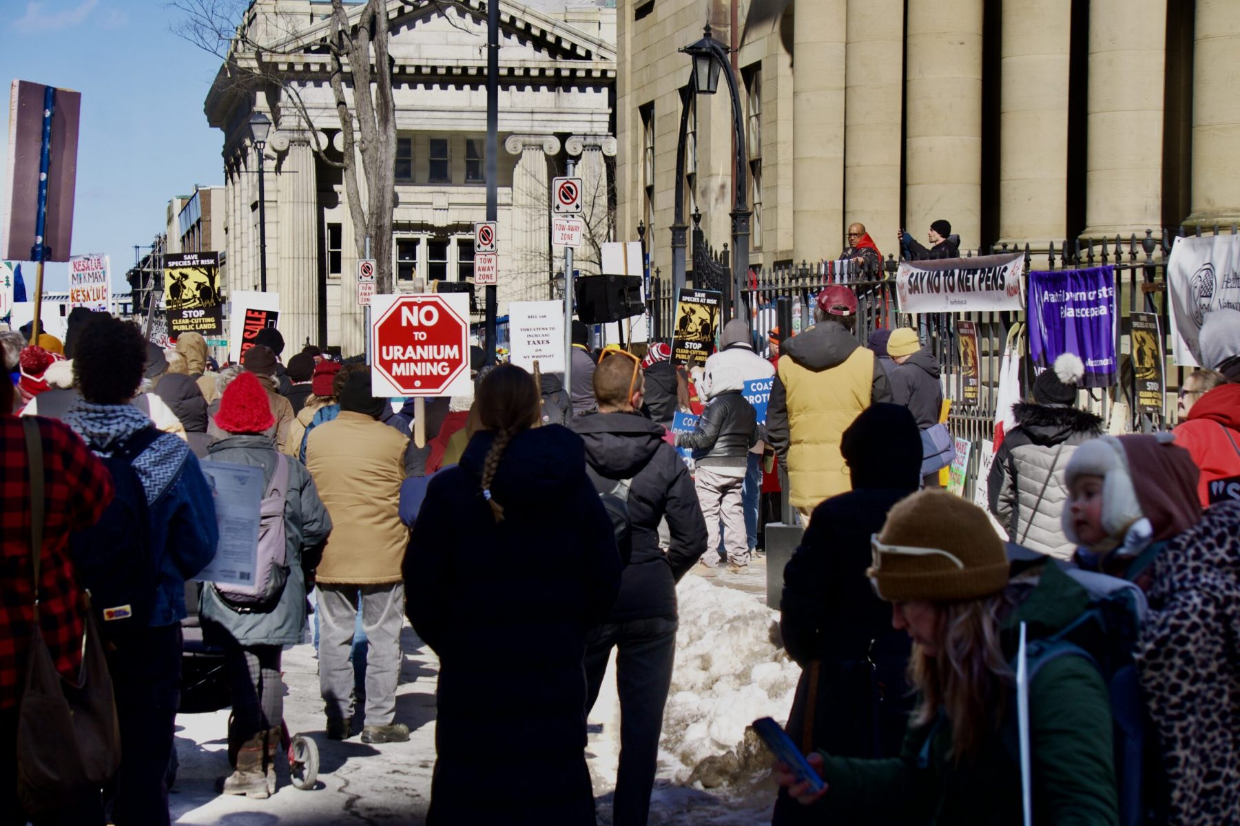 It began with a trickle of people with their signs, hearts on their sleeves, and frustration in their lungs. Then, the Mi’kmaq land defenders, water walkers, and knowledge holders took their rightful places on the steps of Province House – after all, they governed this place first. Albeit, very differently from what we are seeing from the Houston PC Government.