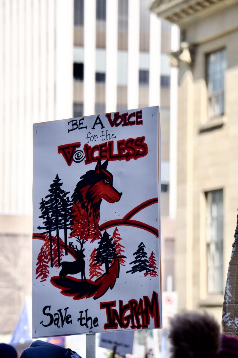 They saw some familiar faces and many new faces. Soon, hundreds of humans filled the street called Granville! Our land and water protector friends spoke to the crowd, and the crowd cheered the protectors on in response. The critters quickly learned that all the faces in the crowd were friends, here to speak up for them when they could not.