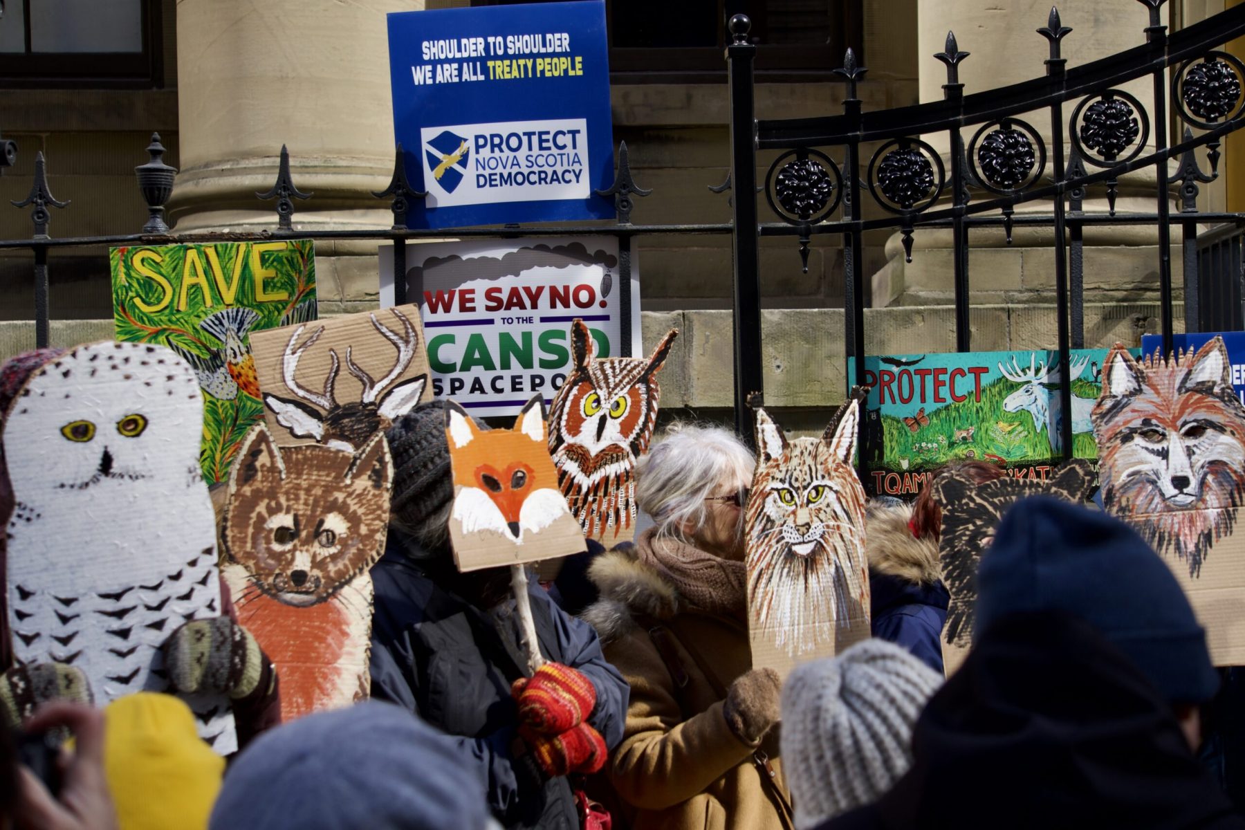 The Camp NOW critters even showed up! They called in some human reinforcements and made the journey to Province House in Kjipuktuk (Halifax), where they stood Shoulder-To-Shoulder with their human friends.