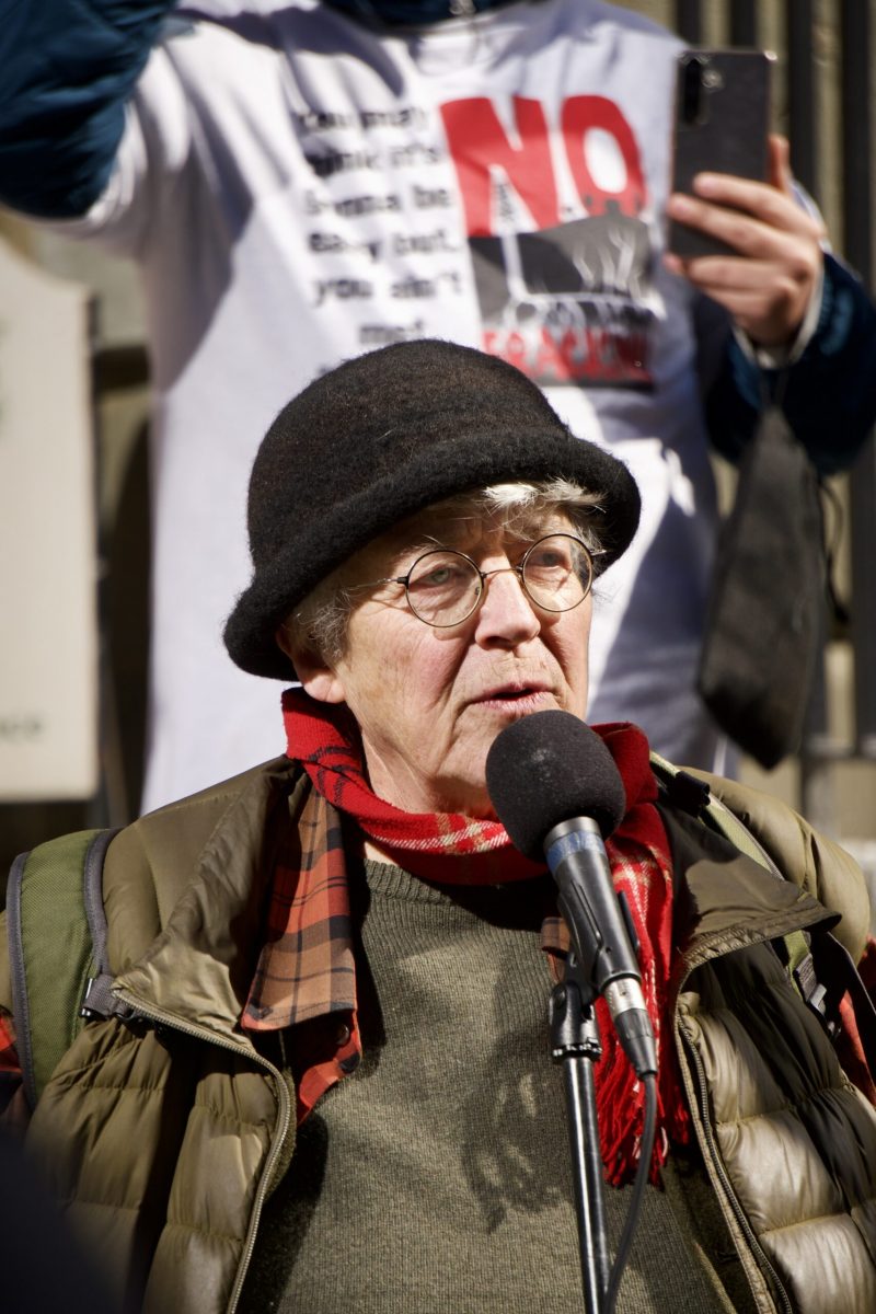 SOOF’s president, Nina Newington, captivated the audience with her poetic and motivational words. “This is the way forward — Shoulder-To-Shoulder. If we want a livable future, then this [rally] must be just the beginning… There is so much joy and strength to be found in standing together and getting in the way of what damages the earth. I felt that joy and strength flowing through Hunter’s Mountain both times I’ve been there.” Nina then asked the crowd directly to take the following pledge, which she herself has made to this earth: “I will do what I can.” The crowd cheered and repeated back to her, “I will do what I can!” Nina concluded her speech by saying, “If enough of us make this pledge, and we [Mik’maq and settlers], we will change the world… when they flow together, one thousand trickling streams become a roaring river.”