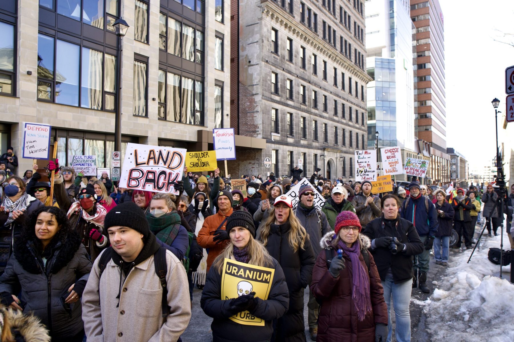 On the afternoon of Saturday, November 15th, 2025, hundreds of people gathered in Kjipuktuk (Halifax) at the Commons to stand Shoulder-To-Shoulder with the land and water defenders of Tqamuoweye’katic (Hunter’s Mountain) and across Mi’kma’ki.