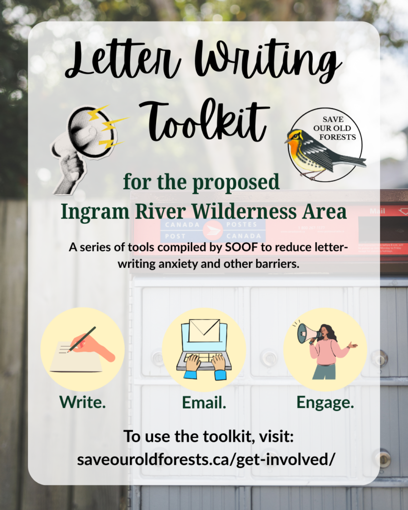 If you are interested in collaborating to offer a letter-writing workshop to advocate in your area, and would like support from SOOF, please feel free to reach out to us at soof@saveouroldforests.ca.