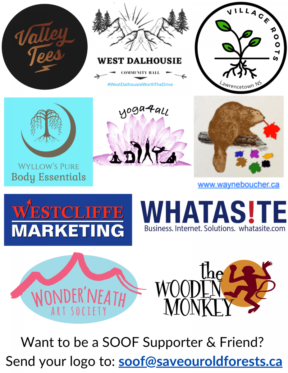 Show your support for SOOF by becoming a “Supporter & Friend” and let us display your business or nonprofit logo. There is power in numbers, and every show of support counts! If you would like to add your logo please send it to soof@saveouroldforests.ca in JPG or PNG formats.